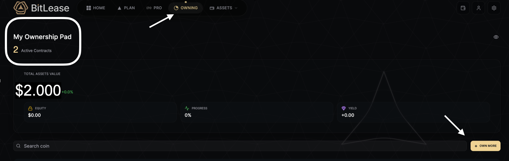 Once you've started a Lease-to-Own (LTO) contract on Bitlease, you can monitor and manage your active leases through the OWNING section. This article guides you through viewing your lease details, tracking progress, and understanding your payment obligations.